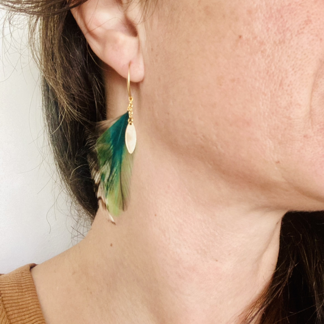 Chacun de mes bijoux est spécial car chacune des plumes sélectionnées est unique.