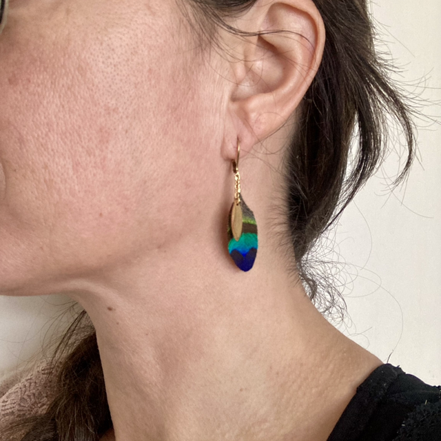 Boucles d’oreilles plumes de Paon - Souveraine - ogive